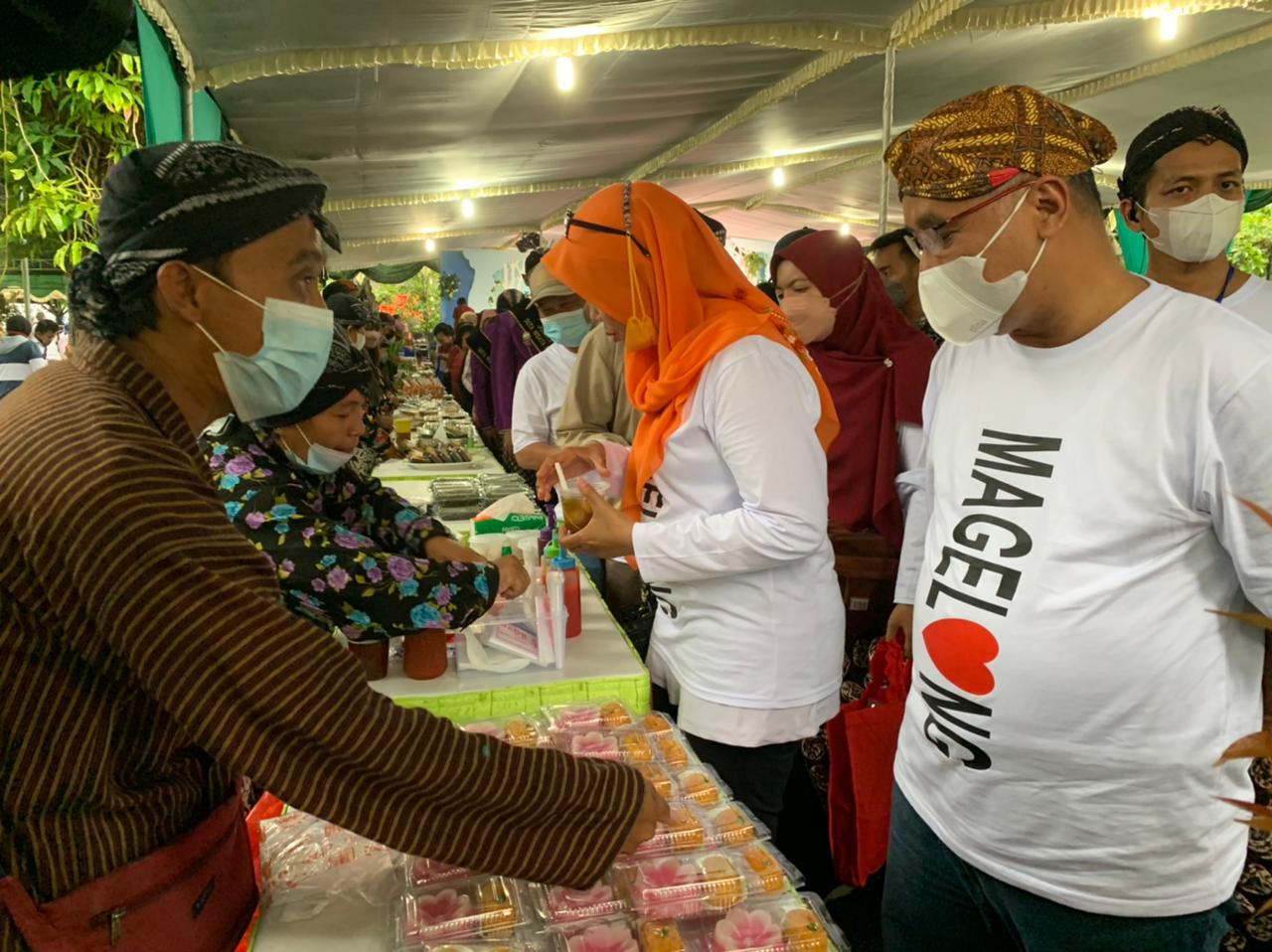 KUNJUNGI STAND : Wali Kota Magelang dr. Muchamad Nur Aziz mengunjungi stand atau tenant UMKM di Taman Kyai Langgeng (Dok Prokompim Kota Magelang)