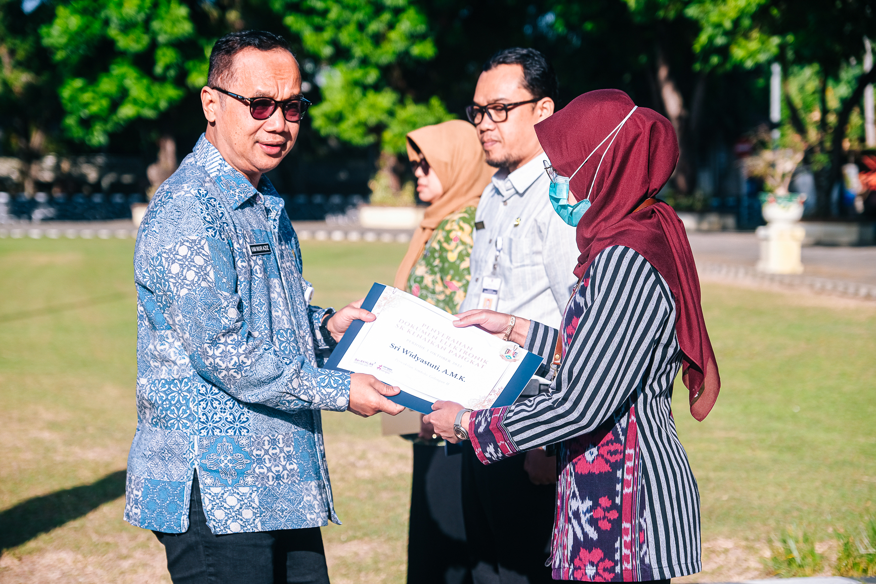 KOTA MAGELANG (wartamagelang.com) – Sebanyak 137 Pegawai Negeri Sipil (PNS) di lingkungan Pemerintah Kota (Pemkot) Magelang menerima Kenaikan Pangkat (KP) untuk gelombang II 1 Oktober 2023. Surat Keputusan (SK) Kenaikan Pangkat diberikan secara simbolis oleh Wali Kota Magelang dr. Muchamad Nur Aziz pada apel di halaman belakang kantor Wali Kota Magelang, Selasa (26/9/2023).