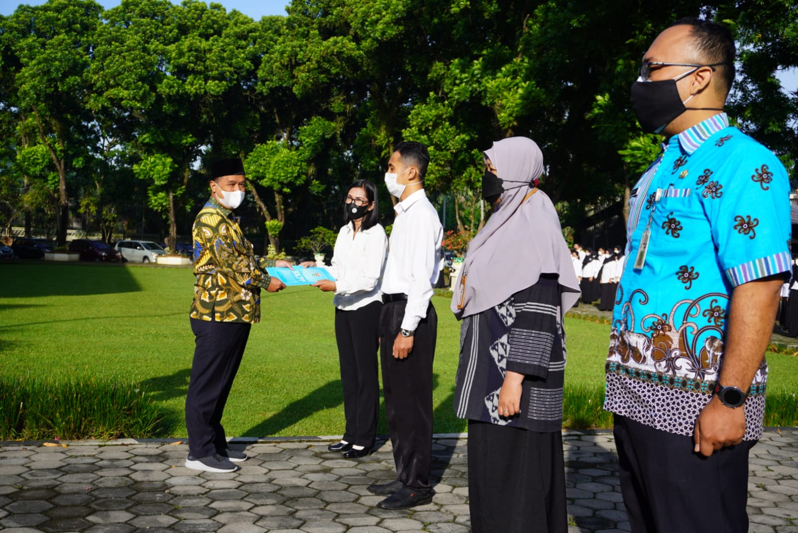 SERAHKAN SK : Wali Kota Magelang dr. Muchammad Nur Aziz menyerahkan SK kepada perwakilan PPPK guru formasi 2021 (Dok Prokompim Kota Magelang)