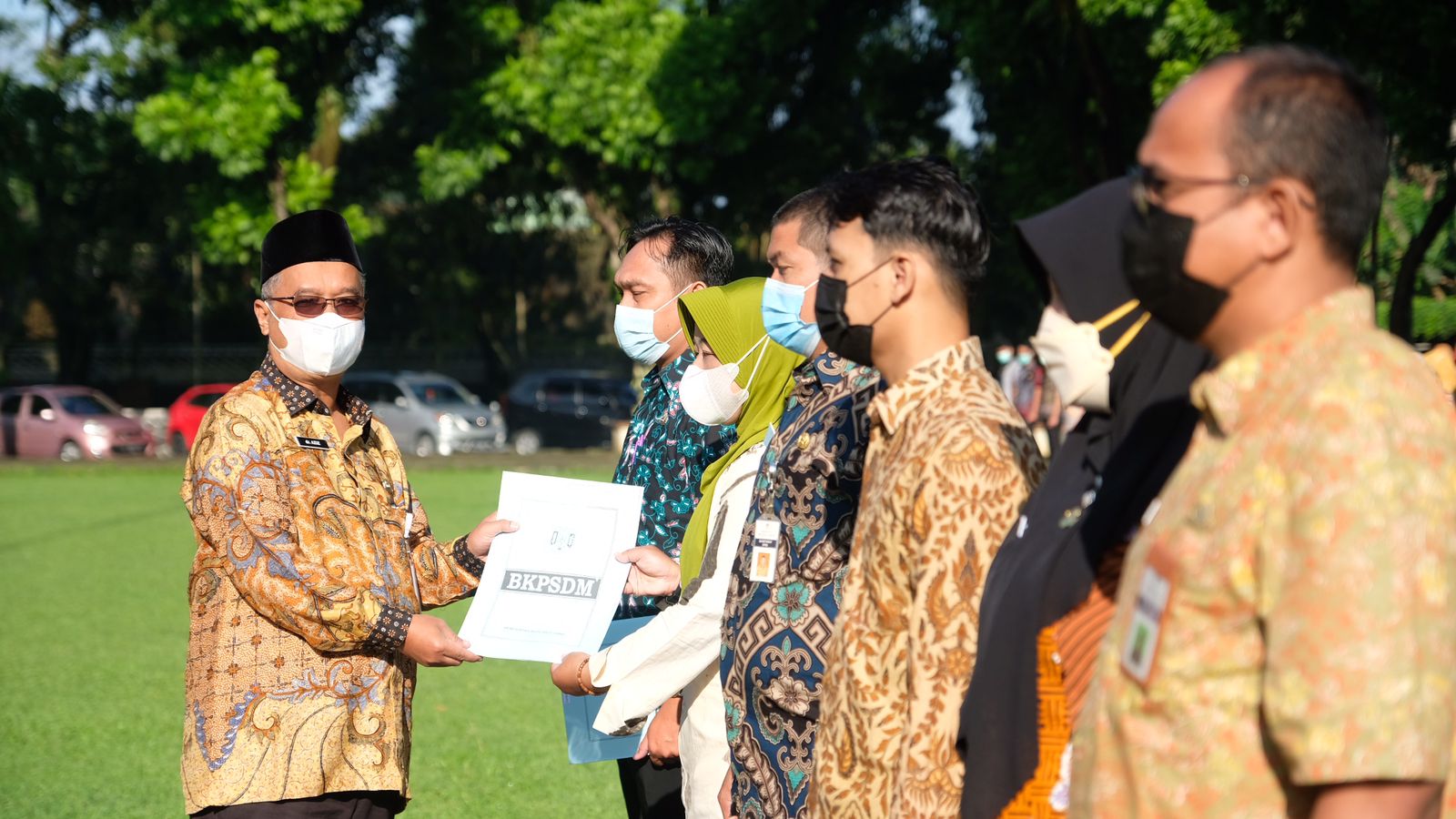 KOTA MAGELANG (wartamagelang.com) Sebanyak 248 orang Pegawai Negeri Sipil (PNS) Pemerintah Kota (Pemkot) Magelang menerima Surat Keputusan (SK) kenaikan pangkat periode 1 April 2022. SK diserahkan secara simbolis, Jumat (1/4/2022), oleh Wali Kota Magelang dr. Muchamad Nur Aziz pada apel pagi di halaman kantor Pemkot Magelang.