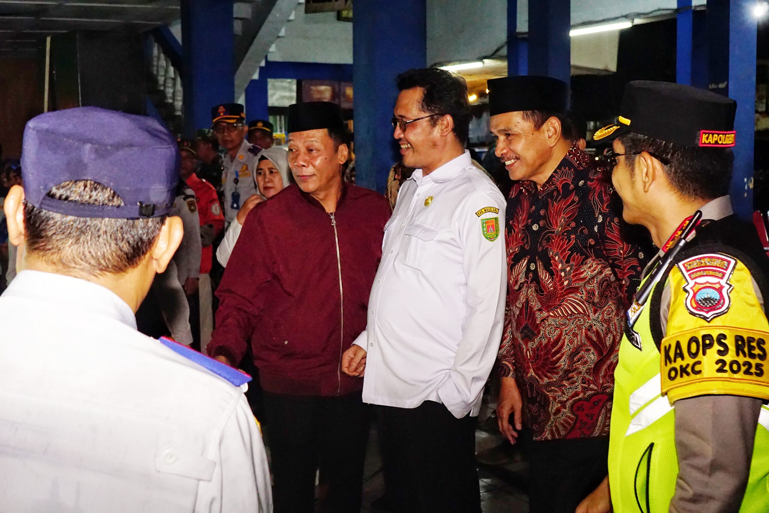 SAMBUT PEMUDIK : Bupati dan Wakil Bupati Magelang serta jajaran Forkopimda saat menyambut kepulangan para pemudik asal Kabupaten Magelang di terminal Secang Magelang (Dok Prokompim Kab Magelang)