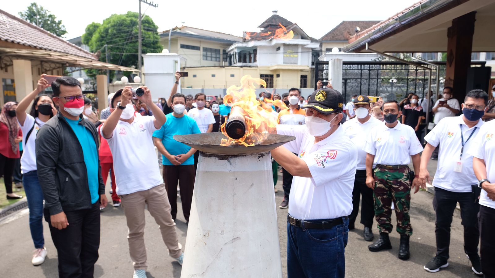 Wakil Wali Kota Magelang KH M Mansyur secara simbolis melakukan kirab obor virtual sebagai pembukaan Pekan Special Olympics Nasional atau PeSONas. Pembukaan PeSONas digelar di Pendopo Pengabdian, Rumah Jabatan Wali Kota Magelang, Jumat (18/3/2022).