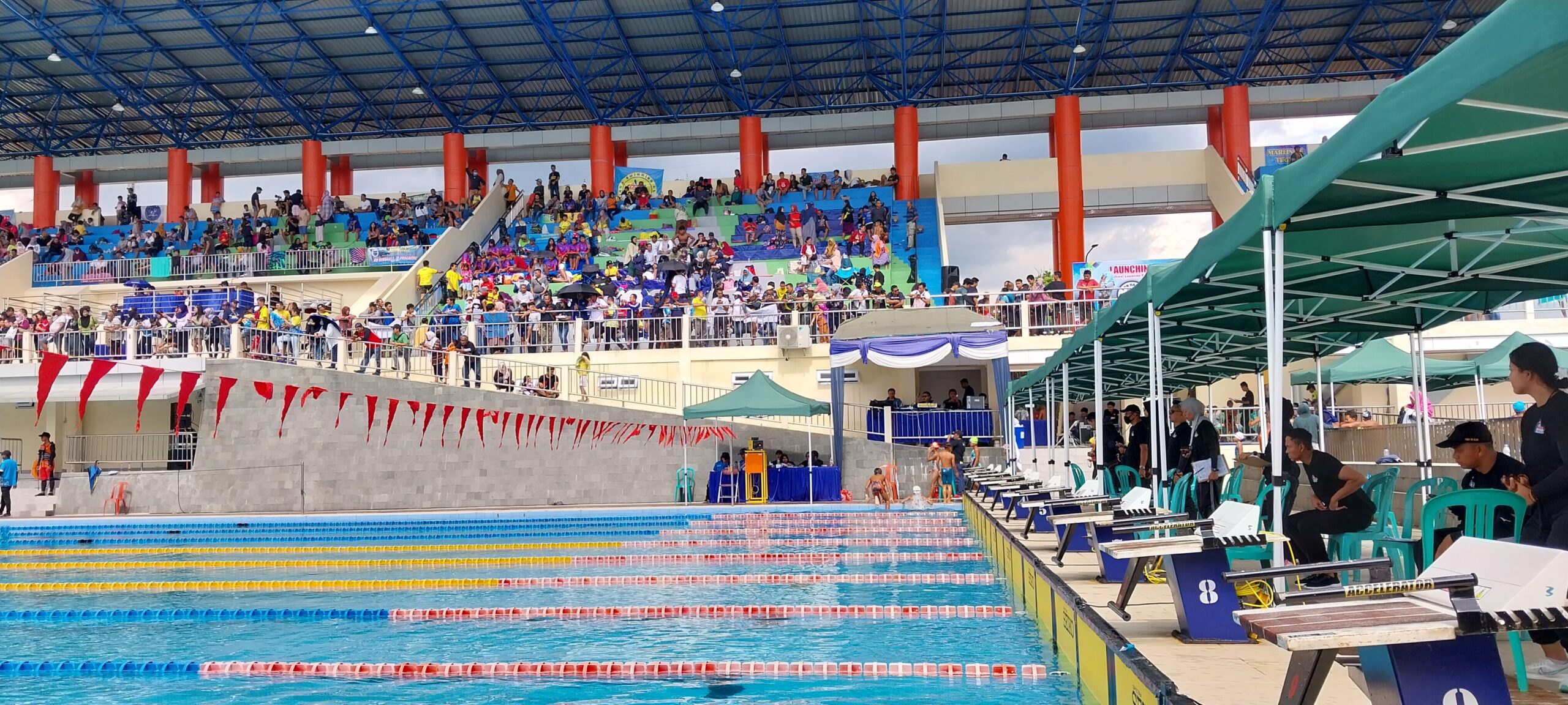 BERSAING KETAT : Ratusan atlet bertanding di event kejuaraan renang tingkat nasional di Samapta Akuatik Stadium Kota Magelang (Dok Panitia KRAP Wali Kota Magelang Cup II)