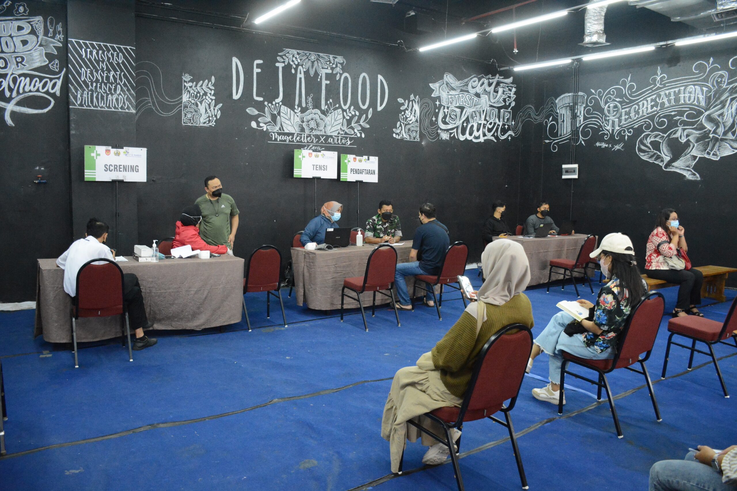 VAKSINASI BOOSTER : Pengunjung tampak antusias mengikuti vaksinasi booster di Artos Mall Magelang (Dok Artos Mall)