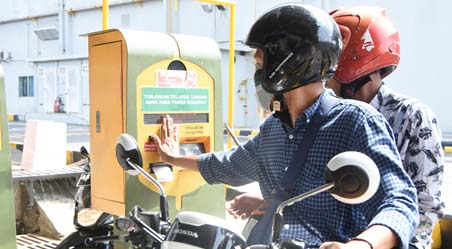 “Selanjutnya, scan tiket terlebih dahulu di bagian scanner dengan menempelkan barcode tiket. Baru setelah itu tempelkan kartu yang dipakai di bagian scanner e-money. Jika sudah secara otomatis tiang parkir akan terbuka,” terangnya (ang/aha)
