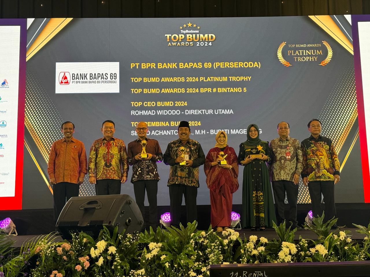 Penghargaan ini juga diberikan kepada Penjabat Bupati Magelang, Sepyo Achanto sebagai Top Pembina BUMD 2024 dan Direktur Utama Bank Bapas 69 , Rohmad Widodo sebagai Top CEO BUMD 2024. Bank Bapas 69 Magelang sendiri dinilai memiliki pencapaian kinerja, kepemimpinan, dan manajemen yang baik serta selaras dengan visi BUMD.