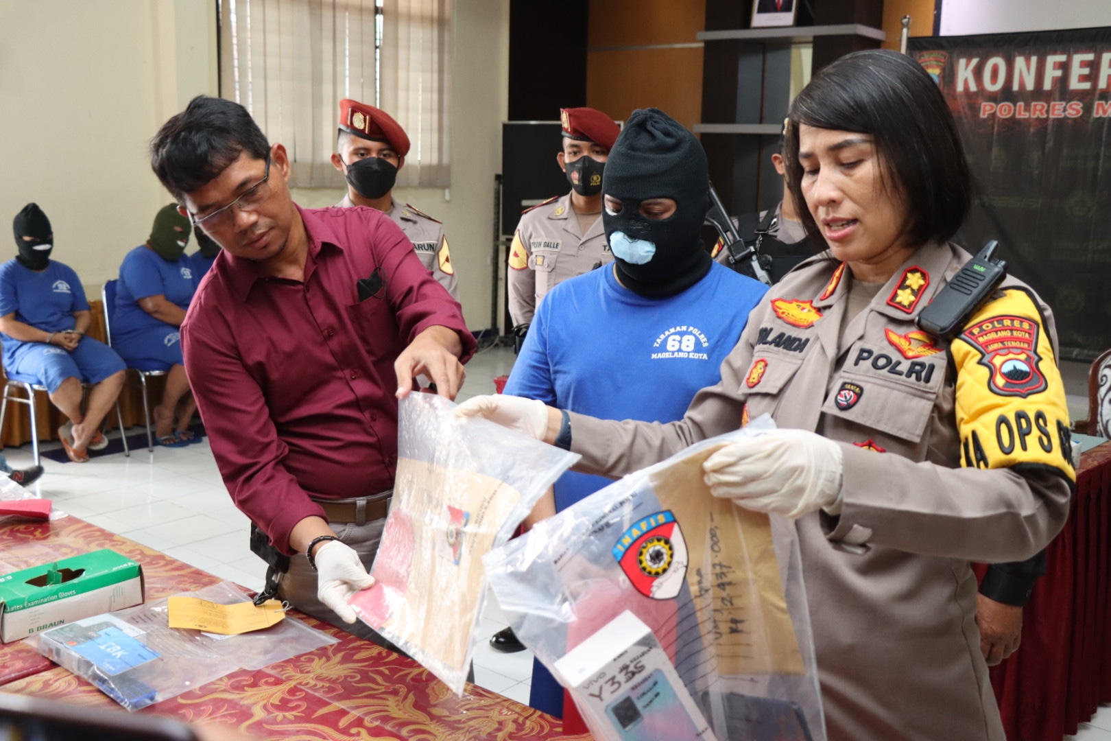 BARANG BUKTI HP : Kapolres Magelang Kota AKBP Yolanda E Sebayang menunjukkan barang bukti handphone (Dok Humas Polres Magelang Kota)