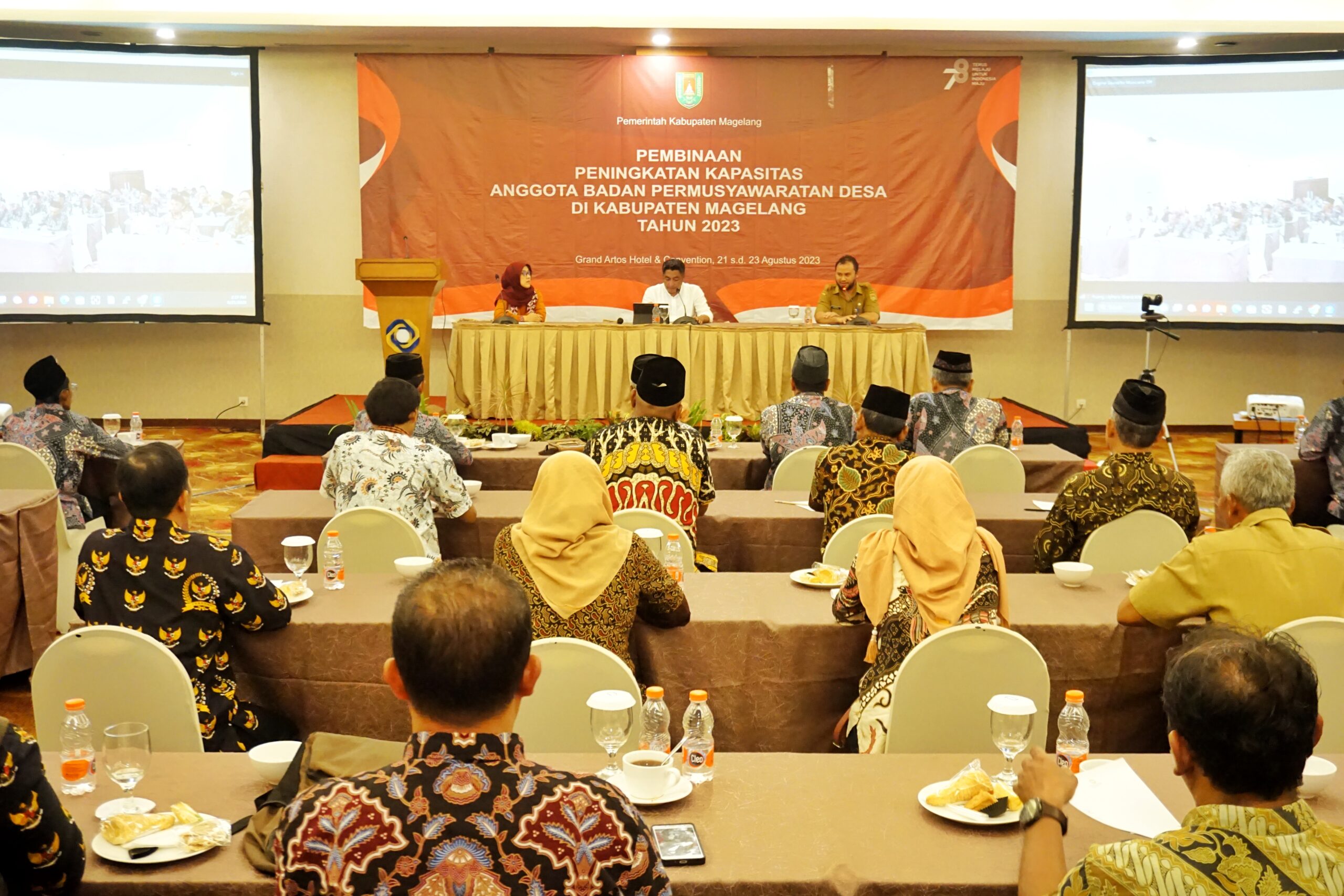 Hal ini ditekankan Bupati Magelang Zaenal Arifin saat acara Pembinaan Peningkatan Kapasitas Anggota Badan Permusyawaratan Desa (BPD) di Kabupaten Magelang, di Ruang Cemara Grand Artos Hotel Magelang, Senin (21/8/2023). Hadir dalma kegiatan tersebut Ketua Tim Penggerak PKK Kabupaten Magelang, Christanti Handayani dan Kepala Dispermades Kabupaten Magelang, Gunawan Yudi Nugroho menghadiri