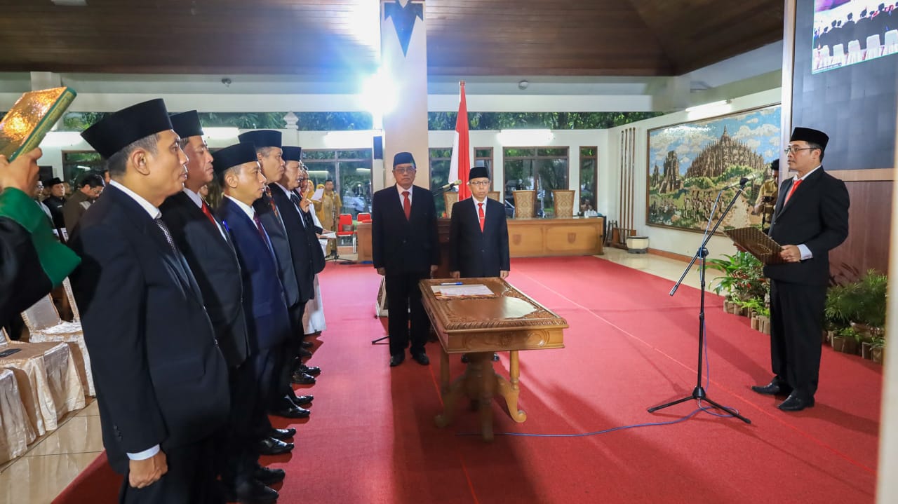 Bupati Magelang Grengseng Pamuji mengukuhkan 31 dan melantik enam Pegawai Negeri Sipil (PNS) di Pendopo Komplek Setda Kabupaten Magelang, Selasa (31/3/2025) sore. Foto: Humas Prokompim Kabupaten Magelang