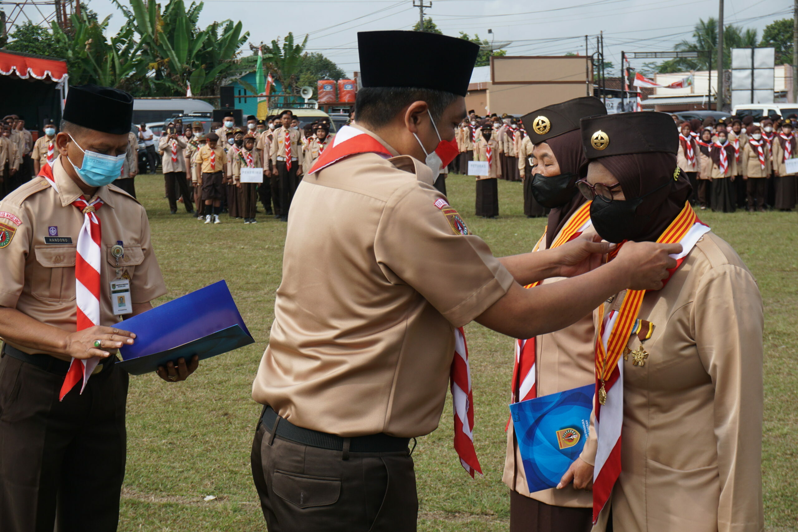 SERAHKAN PENGHARGAAN : Bupati Magelang Zaenal Arifin menyerahkan penghargaan gerakan Pramuka usai upacara peringatan hari Pramuka Ke-61 Tingkat Kabupaten Magelang (Dok Prokompim Kab Magelang)