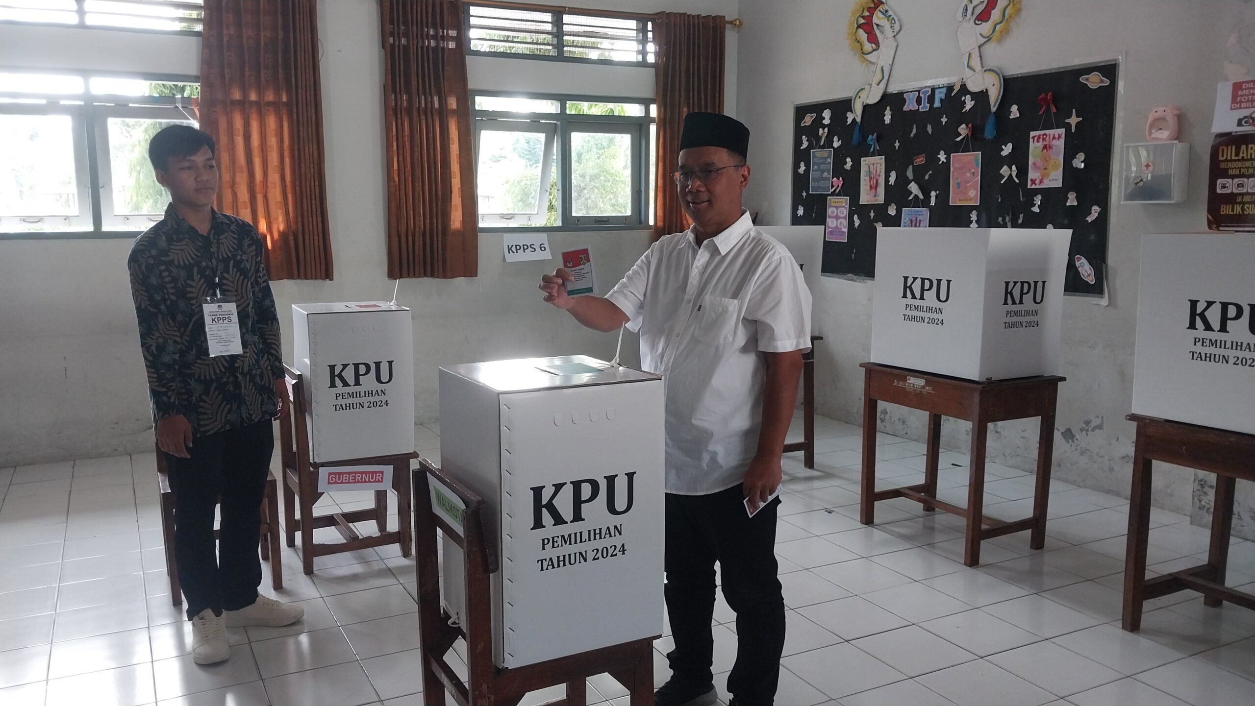 BERI SUARA : Calon Wali Kota Magelang nomor urut 2, Damar Prasetyono pun ikut memberikan hak pilihnya di TPS 11 Kedungsari (Asmita Yuthia/wartamagelang.com)