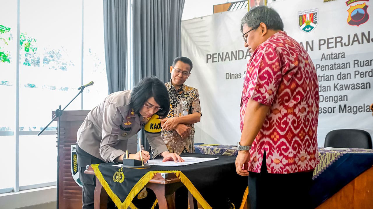 Kerja sama ditandai dengan penandatanganan kesepakatan Pj. Sekda Kota Magelang, Larsita, dan Kapolres Magelang AKBP Yolanda Evalyn Sebayang di kantor DPUPR Kota Magelang, Selasa (23/5/2023).
