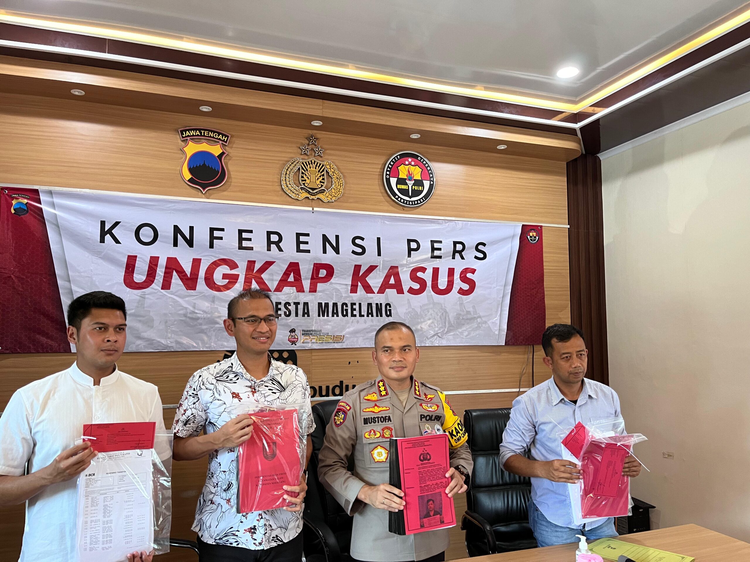 Kapolresta Magelang Kombes Pol Mustofa dalam jumpa pers, Jumat (27/9/2024) di Ruang Media Center, mengatakan bahwa tersangka berinisial AM, usia 51 tahun, selaku Kepala Desa Tirto, Kec. Salam, Kab. Magelang.