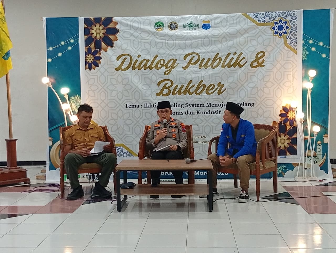 Kapolresta Magelang bersama kelompok mahasiswa dan pemuda Magelang menggelar Dialog Publik Kamtibmas bertajuk “Ikhtiar Cooling System Menuju Magelang Harmonis dan Kondusif”, Rabu (4/3/2026), di Aula IAI Syubbanul Wathon. Foto: Dok Panitia