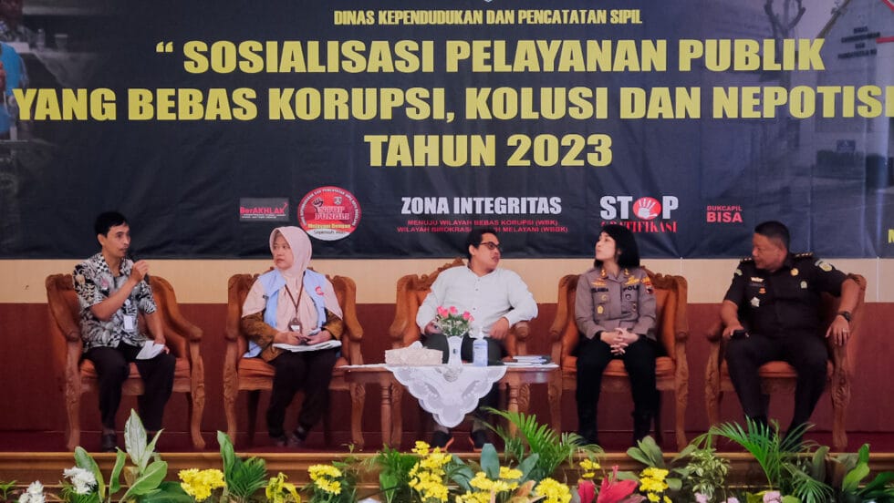 “Sosialisasi ini bertujuan untuk mewujudkan mutu pelayanan adminduk yang bebas korupsi, kolusi dan nepotisme dalam upaya peningkatan pelayanan masyarakat yang membahagiakan,” kata Sri Mulatsih.