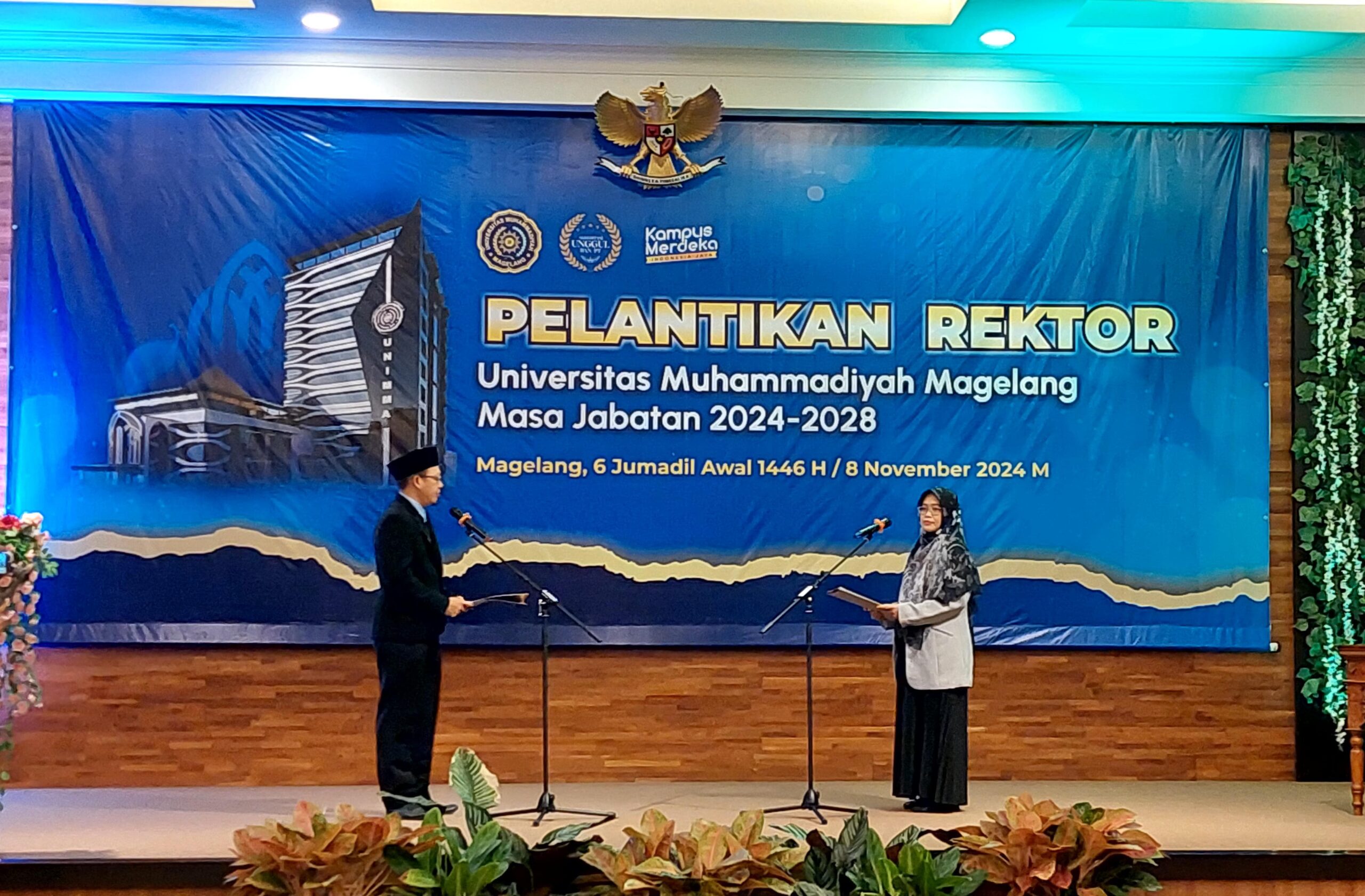 LANTIK REKTOR : Sekretaris Majelis Diktilitbang Muhammadiyah, Mohammad Adam Jerusalem melantik dan mengambil sumpah jabatan Dr. Lilik Andriyani, sebagai Rektor Unimma Periode 2024-2028 (Assifa Zanuba/wartamagelang.com)
