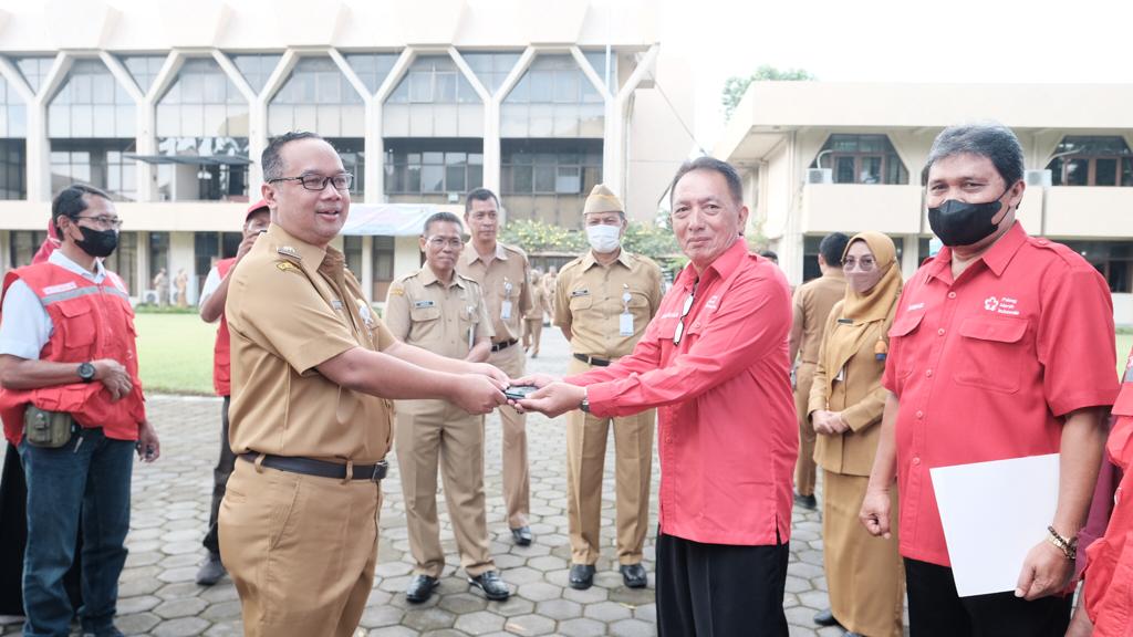 Penyerahan dilakukan secara simbolis oleh Wali Kota Magelang dr. Muchamad Nur Aziz kepada Ketua PMI Kota Magelang Suko Tri Cahyo pada apel pagi di halaman belakang kantor Pemkot Magelang, kemarin. Penyerahan ini sekaligus untuk memperingati Hari Ulang Tahun ke-77 Palang Merah Indonesia, yang diperingati setiap 17 September.