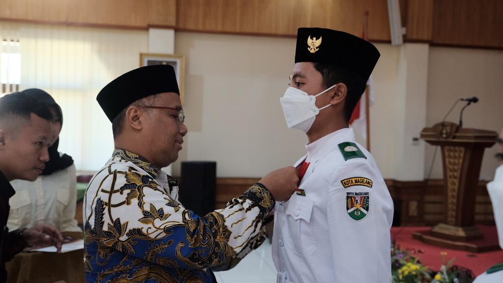 SEMATKAN LENCANA : Wali Kota Magelang, dr. Muchamad Nur Aziz menyematkan lencana kepada Duta Pancasila Kota Magelang (Dok Prokompim Kota Magelang)