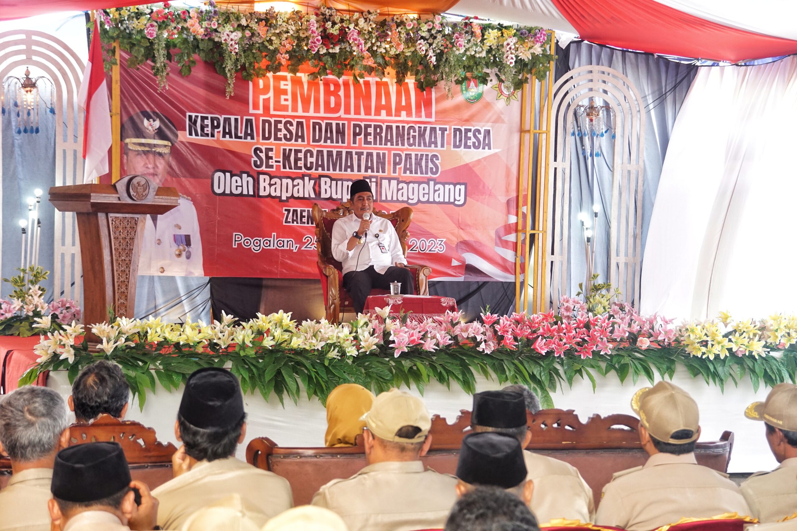 Hal ini disampaikan Bupati Magelang Zaenal Arifin saat acara apel kinerja sekaligus pembinaan bagi Kepala Desa dan Perangkat Desa Se-Kecamatan Pakis, bertempat di halaman Balai Desa Pogalan, Pakis, Senin (25/9/2023).
