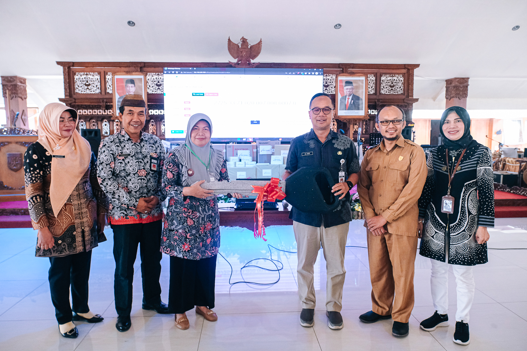 SERAHKAN REWARD : Wali Kota Magelang dr. Muchamad Nur Aziz didampingi Sekda Kota Magelang Hamzah Kholifi, dan Kepala BPKAD Kota Magelang Susilowati menyerahkan reward kepada wajib pajak (Dok Prokompim Kota Magelang)