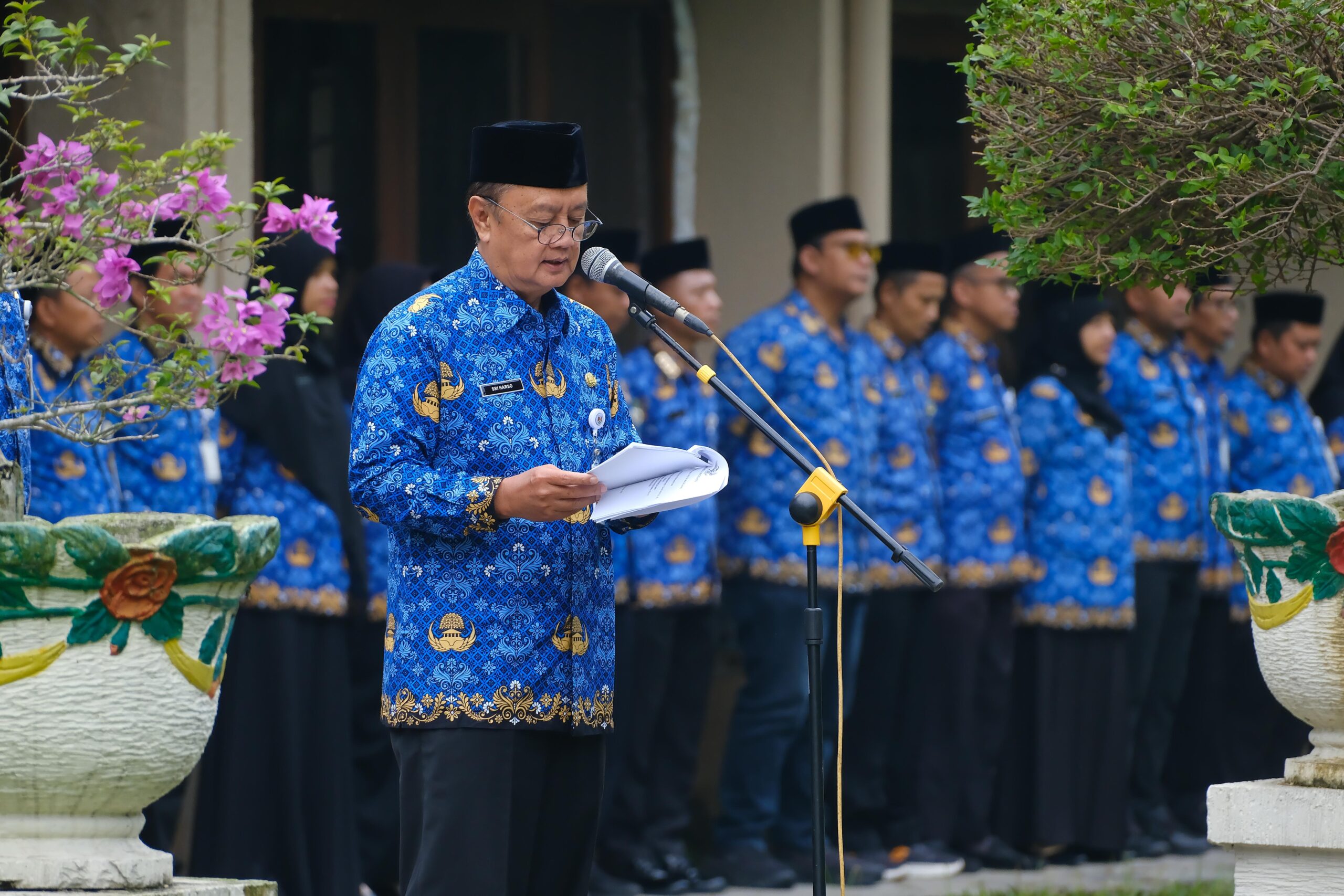 Pada upacara itu, Dokter Sri membacakan amanat tertulis Menteri Komunikasi dan Digital (Komdigi) Meutya Viada Hafid.