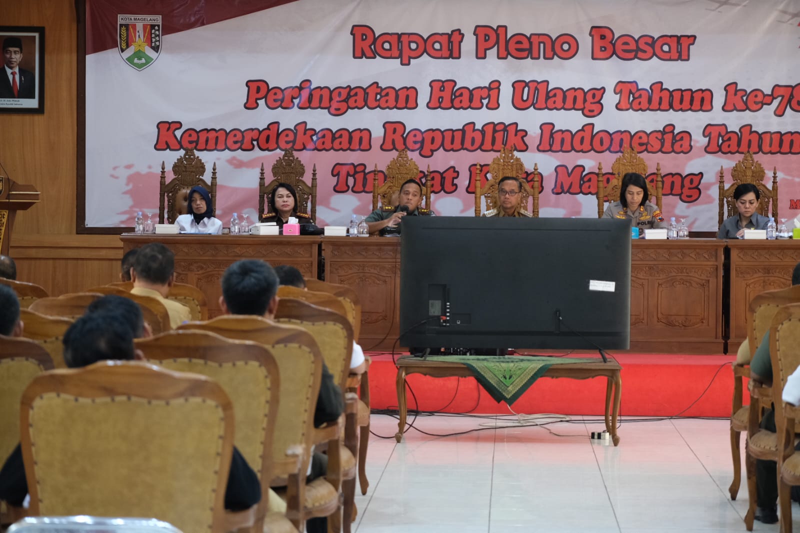 Hal itu diungkapkan Larsita, Pj Sekda Kota Magelang selaku Ketua Umum Panitia Peringatan HUT ke-78 Kemerdekaan RI Kota Magelang, dalam Rapat Pleno Besar Peringatan HUT ke-78 Kemerdekaan RI Tingkat Kota Magelang di Aula Adipura Kencana kompleks Kantor Pemkot Magelang, Senin (7/8/2023).