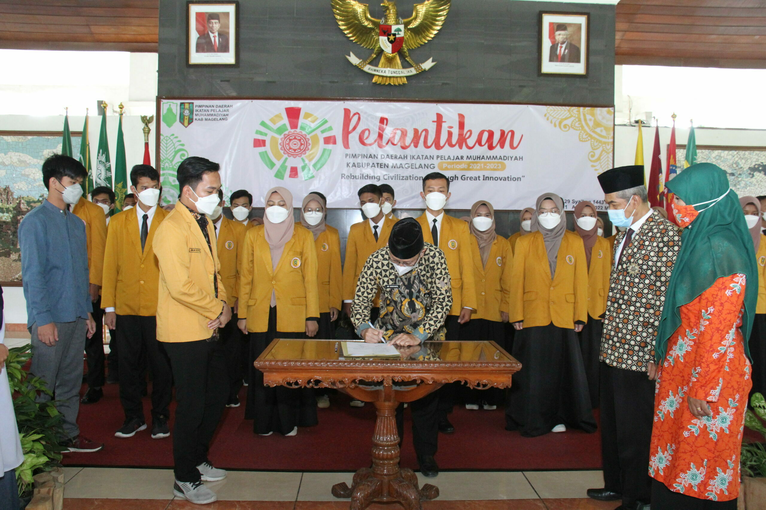 PELANTIKAN IPM : Sekretaris Daerah Kabupaten Magelang Adi Waryanto dalam acara pelantikan Pimpinan Daerah IPM Kabupaten Magelang Periode 2021-2023 di Pendopo Soepardi, Setda Kabupaten Magelang (Dok Prokompim Kab Magelang)