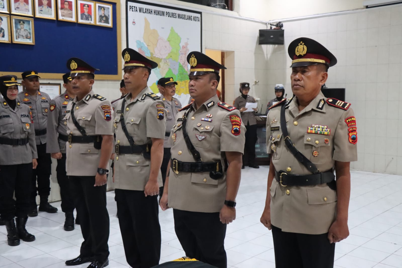 Upacara serah terima tiga jabatan dipimpin langsung oleh Kapolres Magelang Kota, AKBP Yolanda Evalyn Sebayang. Upacara berlangsung di ruang PPKO Mapolres Magelang Kota, Kamis (24/8/2023).