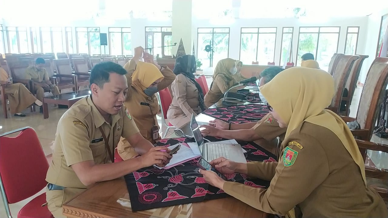 PENGAKTIFAN ID DIGITAL : Petugas Disdukcapil Kabupaten Magelang saat melakukan kegiatan pengaktifan IKD bagi ASN di lingkungan Pemerintah Kabupaten Magelang (Dok Prokompim Kab Magelang)