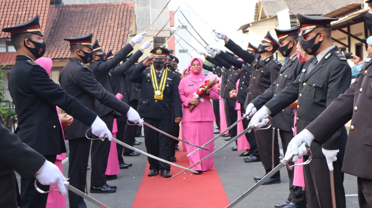 PEDANG PORA : Purnawirawan Polri melewati pedang pora sebagai tradisi upacara wisuda Purna Bakti di Polres Magelang Kota (Dok Humas Polres Magelang Kota)