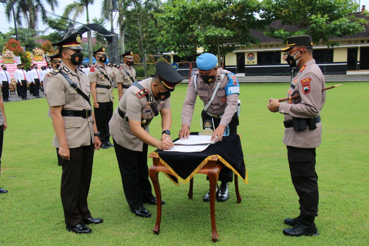 PIMPIN SERTIJAB : Kapolres Magelang AKBP M Sajarod Zakun memimpin serah terima jabatan tiga pejabat baru (Dok Humas Polres Magelang)