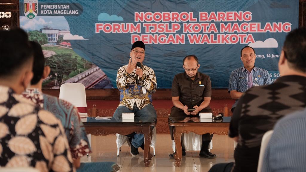 Hal itu diungkapkan Wali Kota Magelang dr. Muchamad Nur Aziz pada kegiatan Ngobrol Bareng Forum TJSLP dan Wali Kota Magelang di Pendopo Pengabdian kompleks rumah jabatan Wali Kota Magelang, Selasa (14/6/2022). Hadir pula pada kegiatan itu, Wakil Ketua DPRD Kota Magelang, Ketua Tim Penggerak PKK Kota Magelang, anggota Forum TJSLP, Kepala OPD dan BUMD serta Camat se-Kota Magelang.