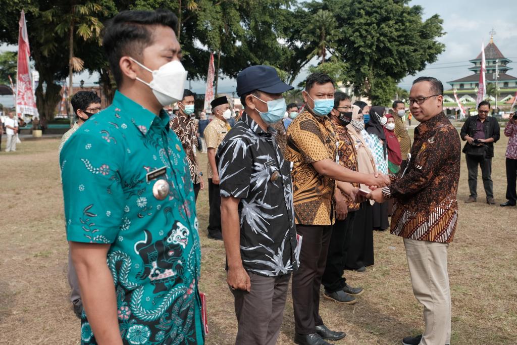SERAHKAN BENDERA : Wali Kota Magelang dr. Muchamad Nur Aziz menyerahkan bendera kepada perwakilan instansi (Dok Prokompim Kota Magelang)