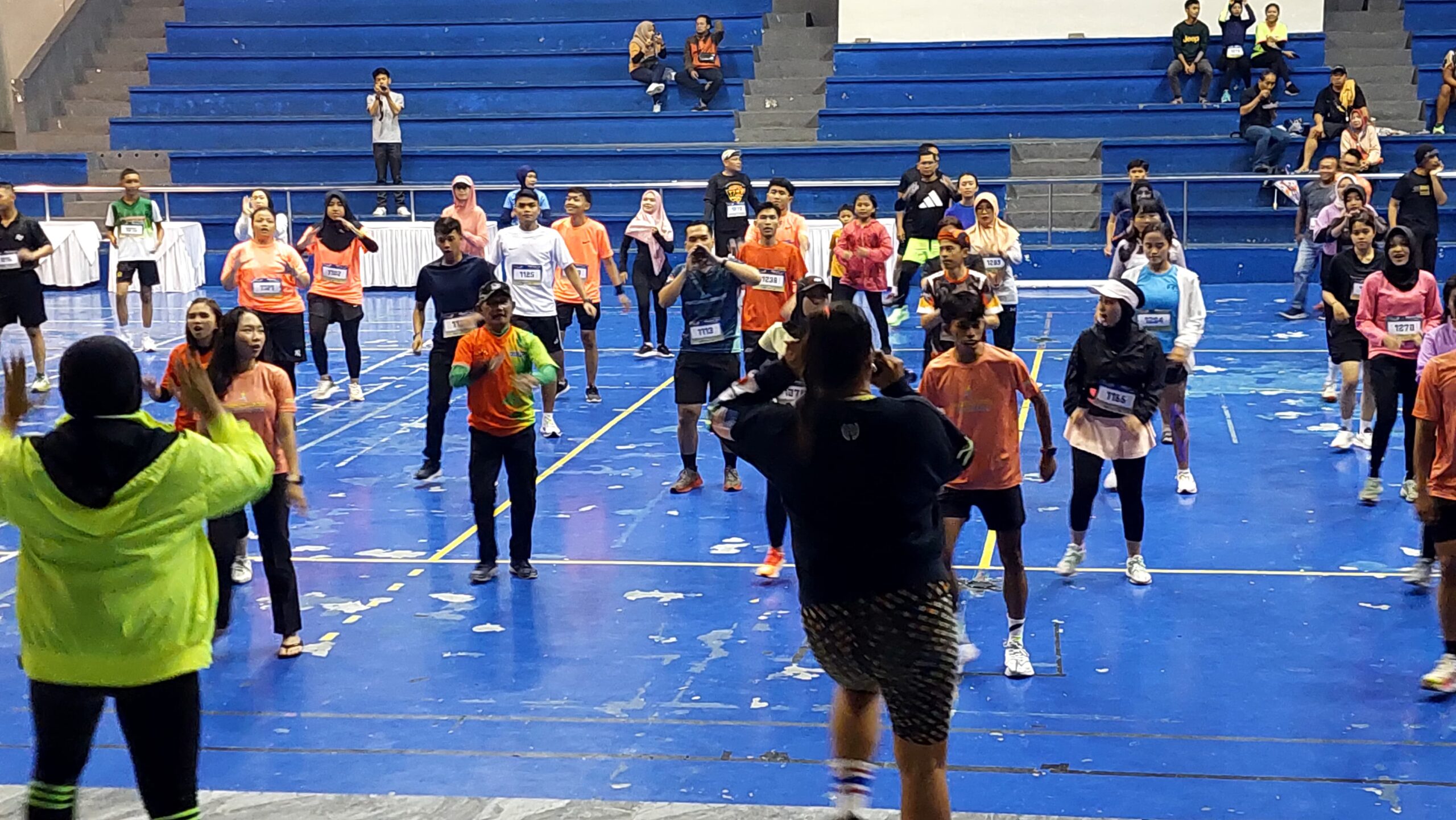 ASYIK ZUMBA : Para runner asyik mengikuti zumba yang dipandu langsung oleh Cik Gu Yulis dan Zin Nani (Assifa Zanuba/wartamagelang.com)