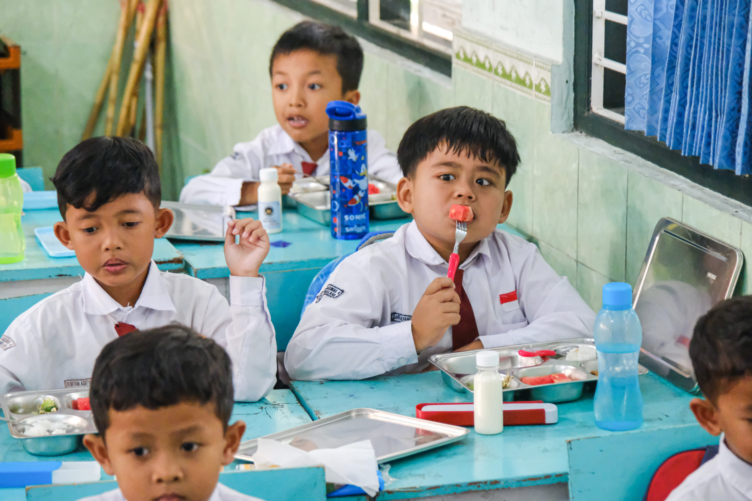 ASYIK MELAHAP : Siswa sekolah di Kota Magelang tampak lahap untuk memakan program makan bergizi gratis (Dok Prokompim Kota Magelang)