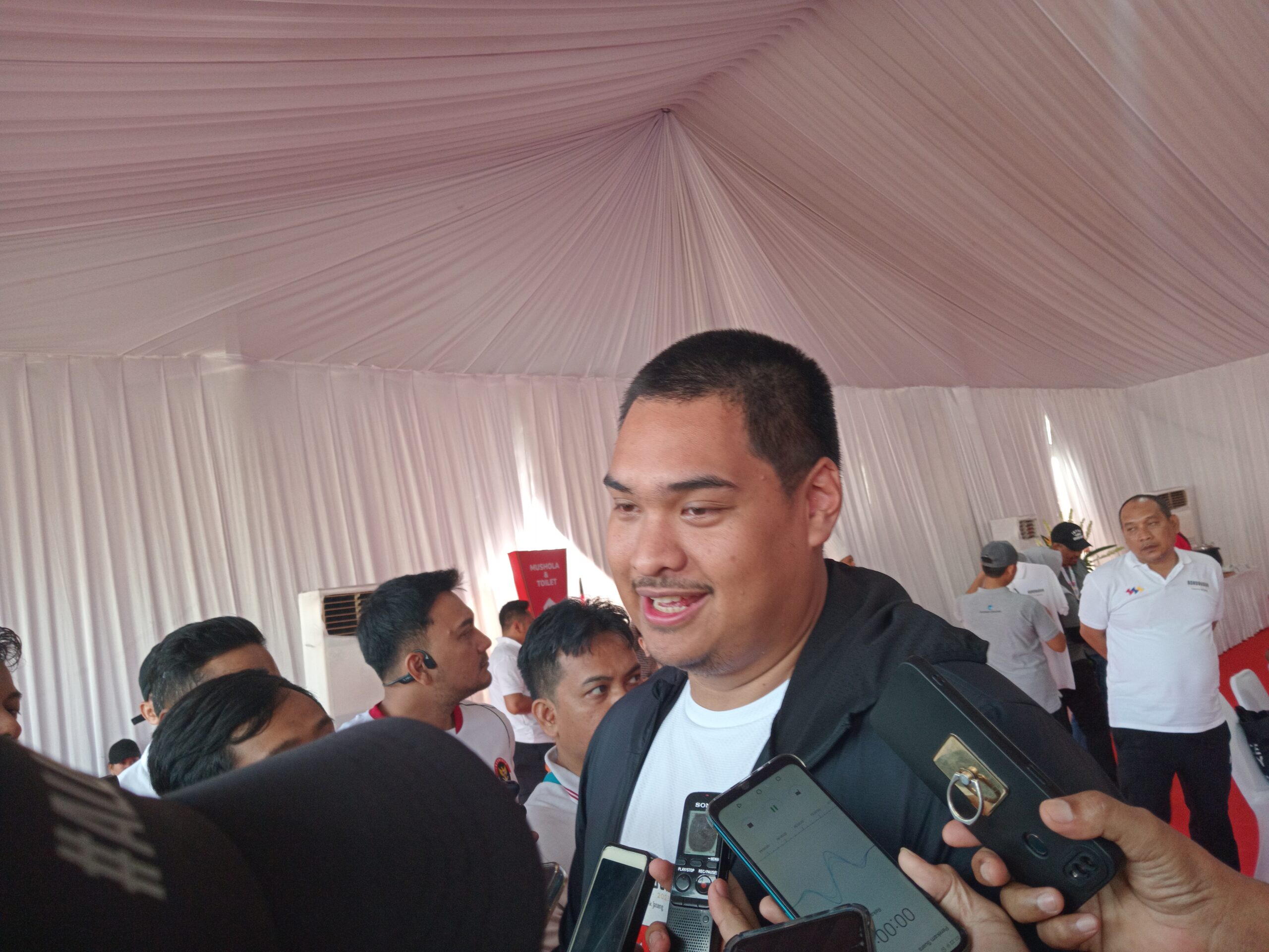 APRESIASI PELAKSANAAN : Menteri Pemuda dan Olahraga Republik Indonesia (Menpora RI) Dito Ariotedjo memberi apresiasi pelaksanaan Borobudur Marathon 2023 kepada awak media (Hadianto/wartamagelang.com)