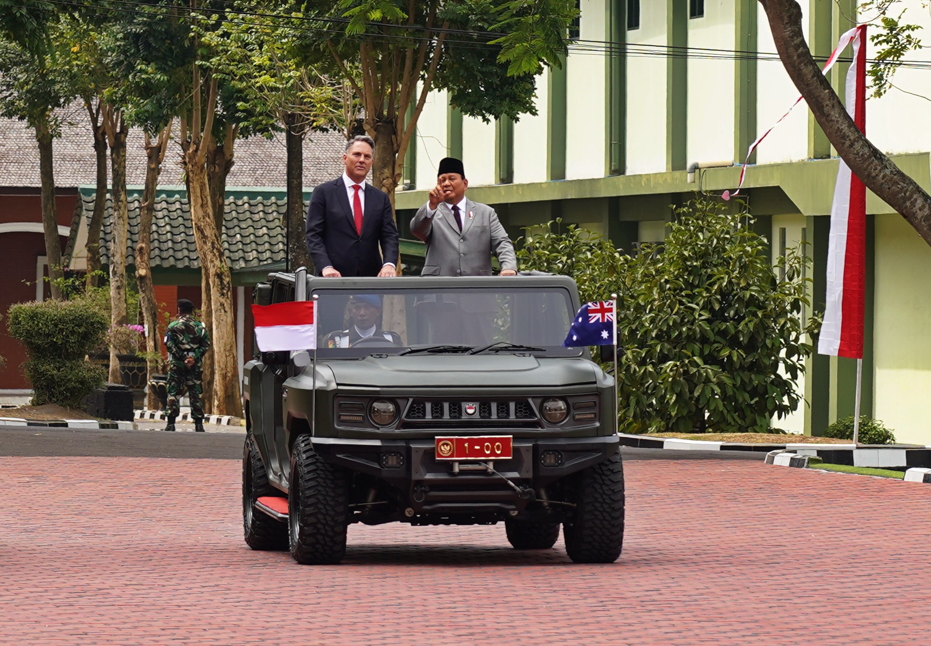 KOTA MAGELANG (wartamagelang.com) – Menteri Pertahanan Republik Indonesia, Prabowo Subianto, menyambut kedatangan Menteri Pertahanan Australia yang juga Wakil Perdana Menteri, The Hon Richard Donald Marles MP, di Lapangan Pancasila Akademi Militer Magelang, Kamis (29/8/2024). Pertemuan ini merupakan bagian dari upaya mempererat Kerja Sama Pertahanan (Defence Cooperation Agreement/DCA) antara Indonesia dan Australia.