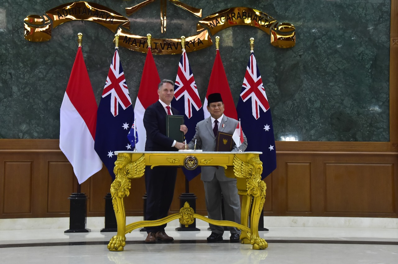 KERJASAMA PERTAHANAN : Menteri Pertahanan RI Prabowo Subianto dan Deputy Prime Minister and Minister for Defence of Australia The Hon Richard Donald Marles MP melakukan penandatanganan Perjanjian Kerja Sama Pertahanan (Dok Penhumas Akmil)