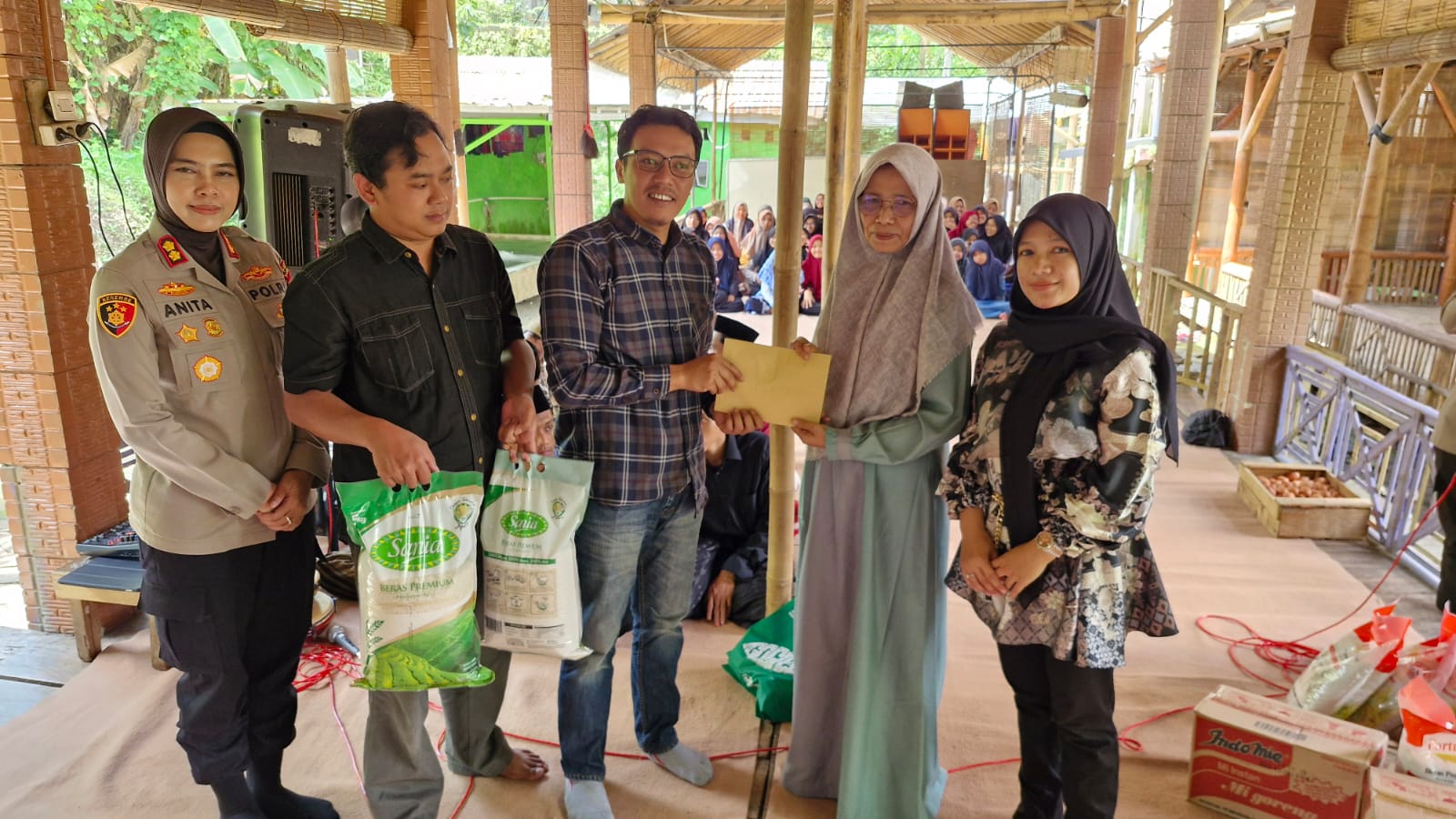 SERAHKAN BANTUAN : Kapolres Magelang Kota, AKBP Anita Indah Setyaningrum bersama jajaran PWI Kota Magelang dalam momen baksos di Pondok Pesantren Selamat (Dok istimewa)