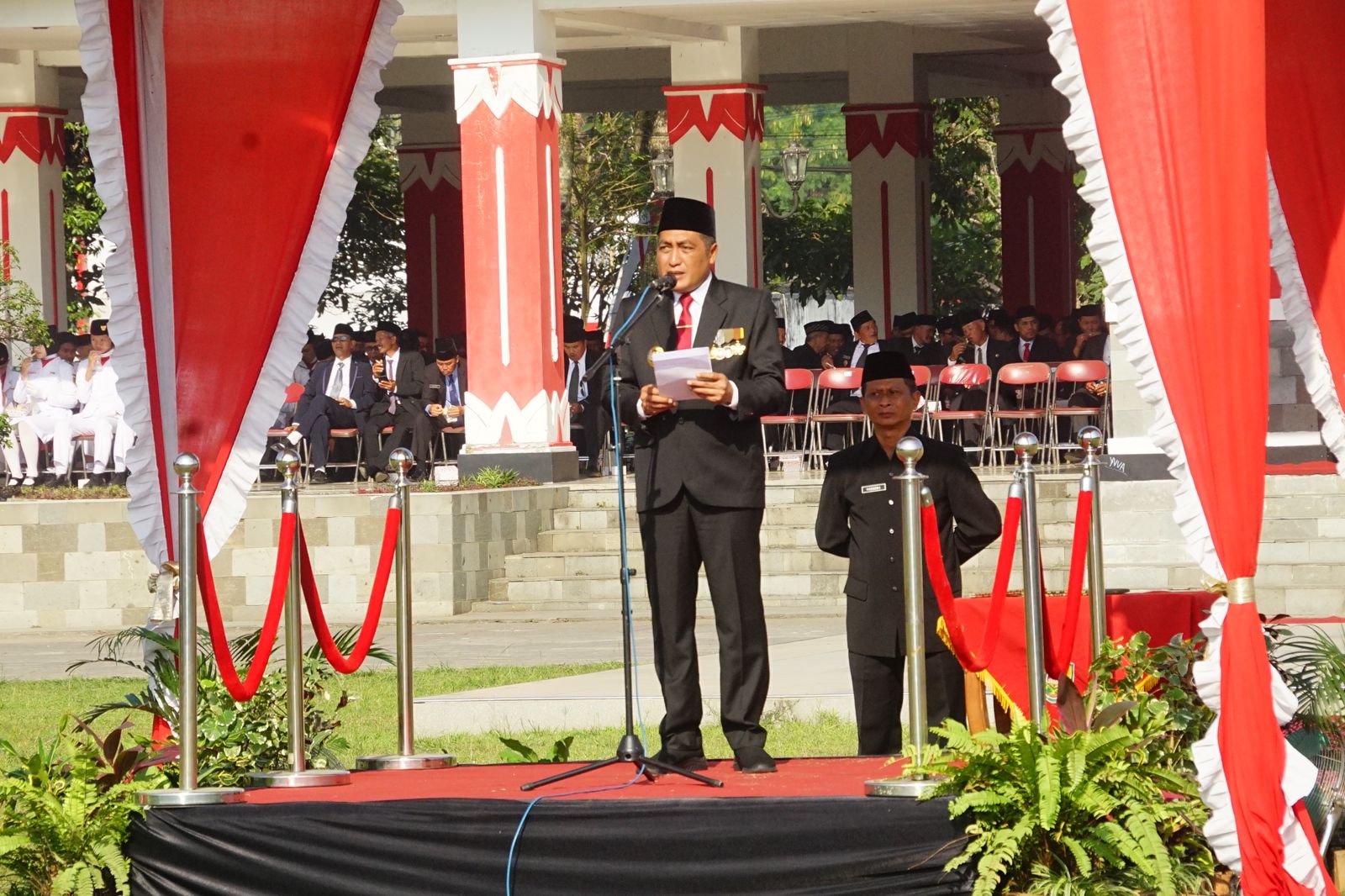 Hadir dalam upacara tersebut Sekretaris Daerah Kabupaten Magelang Adi Waryanto, Jajaran Forkopimda, Kepala OPD, Kepala instansi Vertikal ASN dilingkungan Pemerintah Kabupaten Magelang serta perwakilan siswa/siswi dan perwakilan Mahasiswa yang