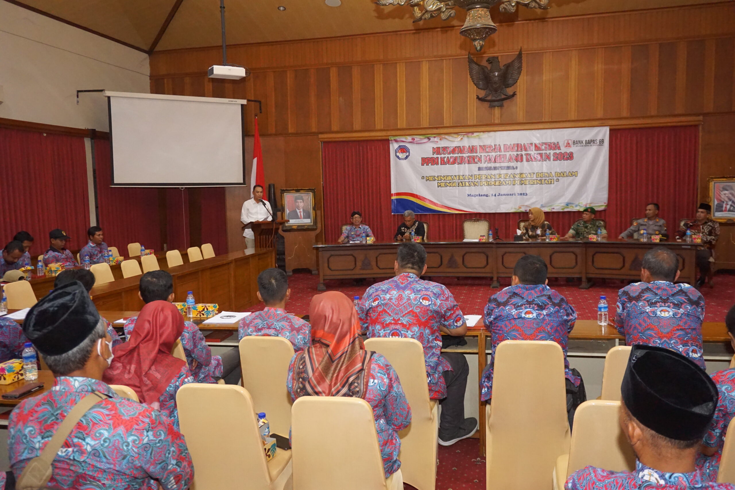 Hal ini disampaikan oleh Bupati Magelang yang diwakili Plt Kepala Dinas Pemberdayaan Masyarakat dan Desa (Dispermades) Kabupaten Magelang, Iwan Sutiarso saat membuka kegiatan Musyawarah Kerja Daerah Ketiga PPDI Kabupaten Magelang Tahun 2023, di Aula Utama Bank Bapas 69, Sabtu (14/1/2023).