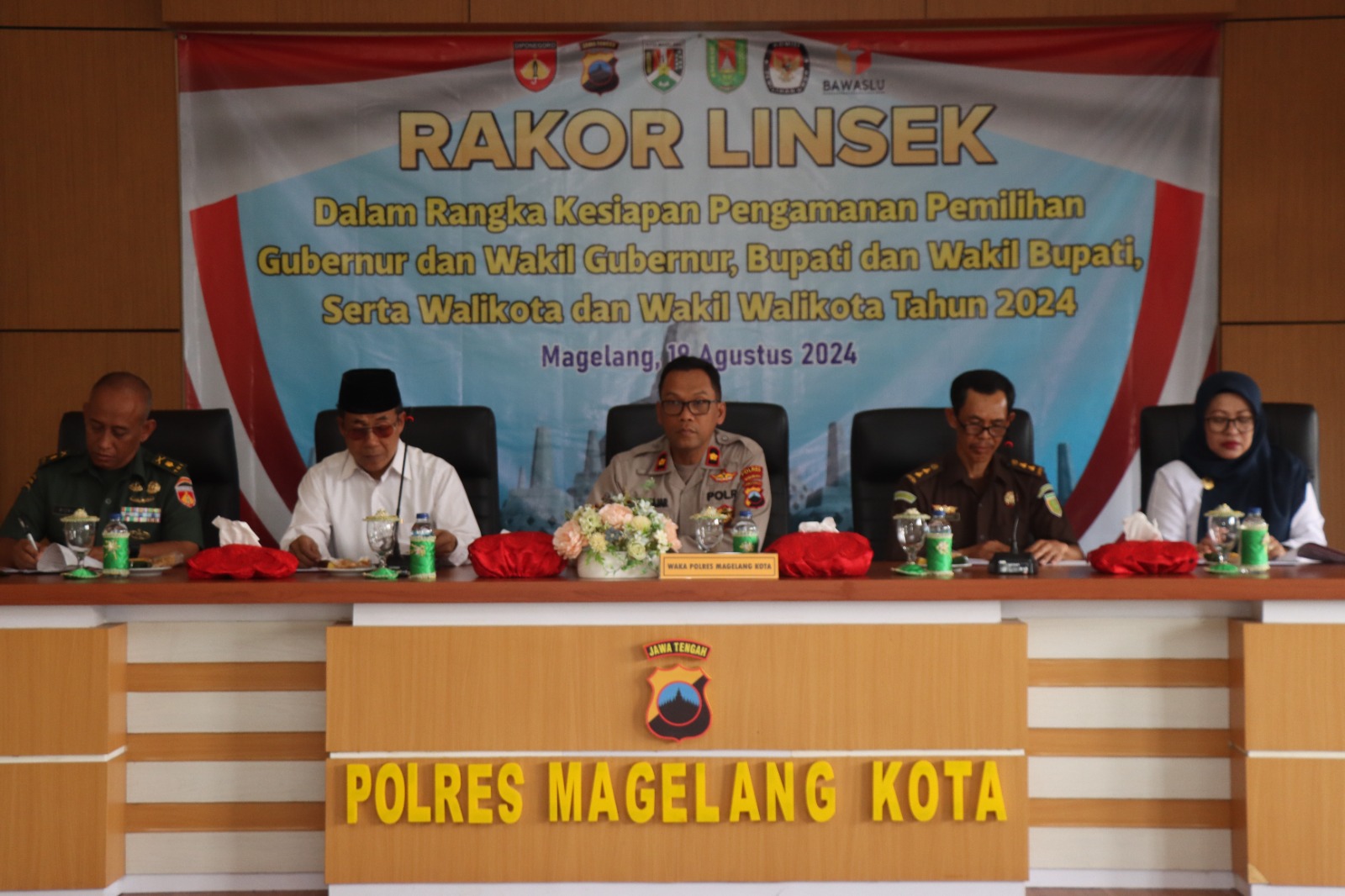 Rakor ini dipimpin oleh Wakapolres Magelang Kota dan dihadiri oleh Pabung Kodim 0705/Magelang, Sekda Kota Magelang, Ketua KPU, Ketua Bawaslu, Kepala Kejaksaan, Ketua Pengadilan, dan berbagai stake holder terkait.