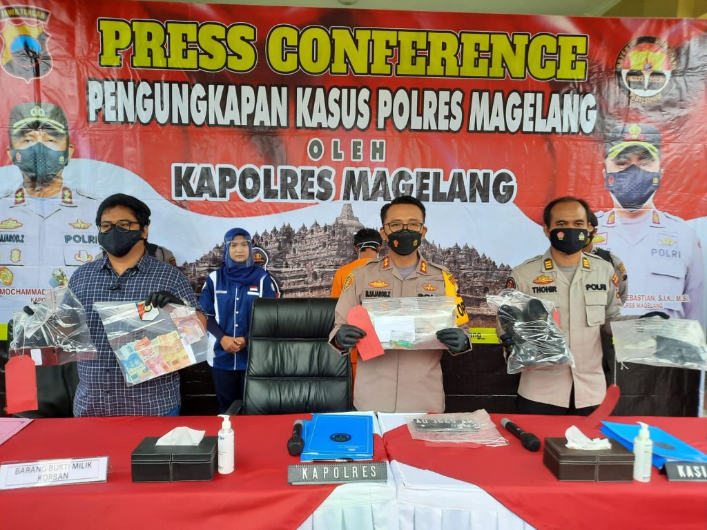 Tersangka yang tidak mengira sudah diikuti oleh petugas Resmob Polres Magelang ini, akhirnya berhasil ditangkap di rumah bedeng proyek apartemen di daerah Cilandak Jakarta Selatan beserta barang bukti milik korban yang masih dikuasai tersangka.