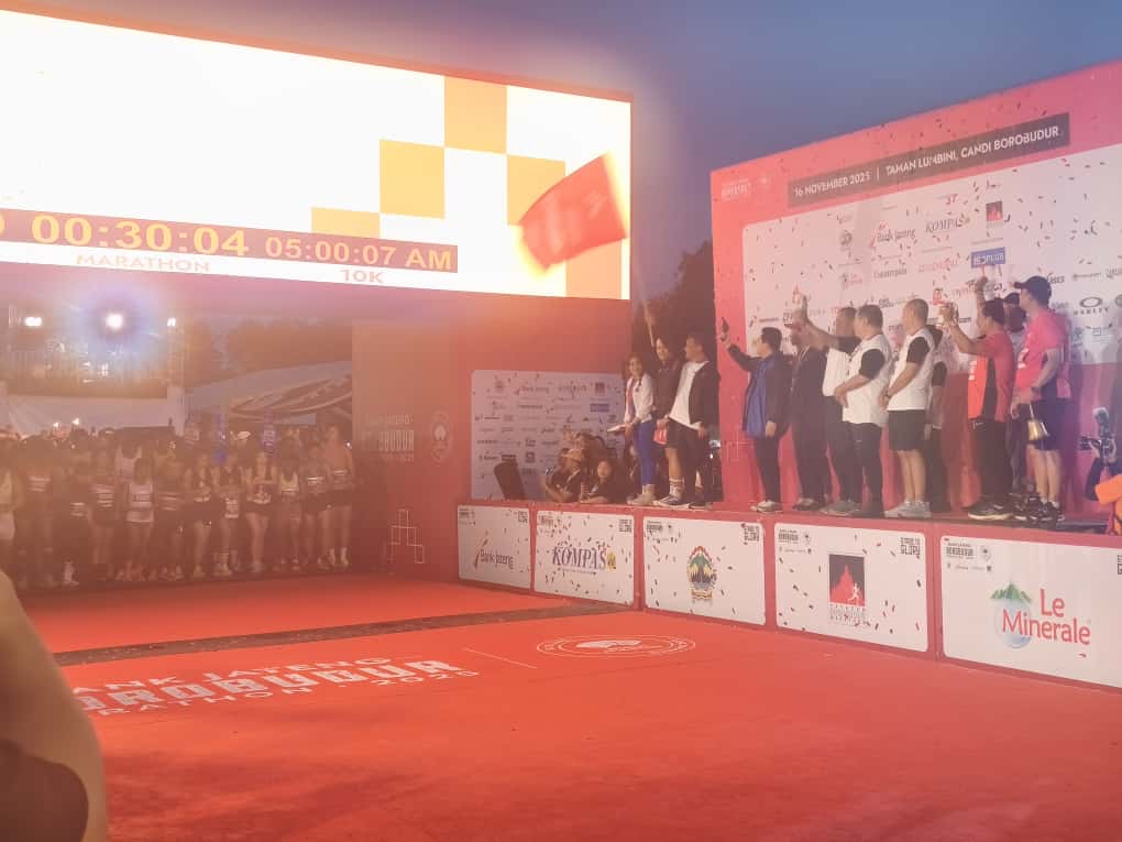 MAGELANG (wartamagelang.com) Sebanyak 11.500 pelari dilepas secara resmi saat gelaran Bank Jateng Borobudur Marathon tahun 2025, Minggu (16/11/2025) di Taman Lumbini Kompleks Candi Borobudur Kabupaten Magelang Jawa Tengah. Bonus total 600 juta bagi yang bisa memecahkan rekor nasional.