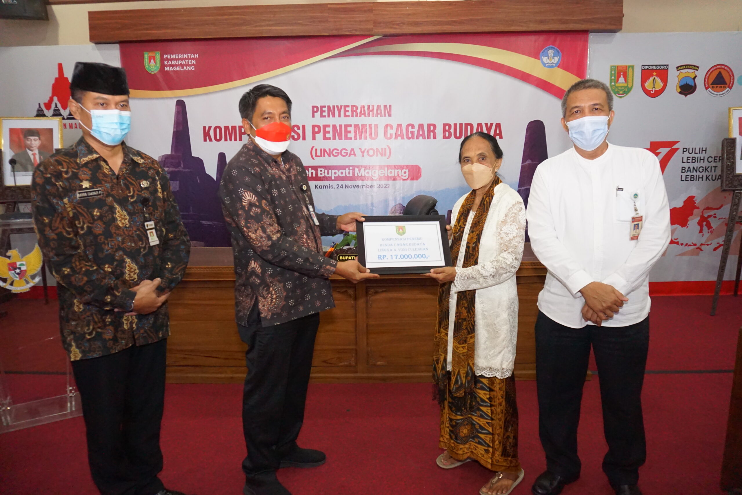 SERAHKAN KOMPENSASI : Bupati Magelang Zaenal Arifin memberikan kompensasi kepada warga atas temuan lingga yoni terbesar (Dok Prokompim Kab Magelang)