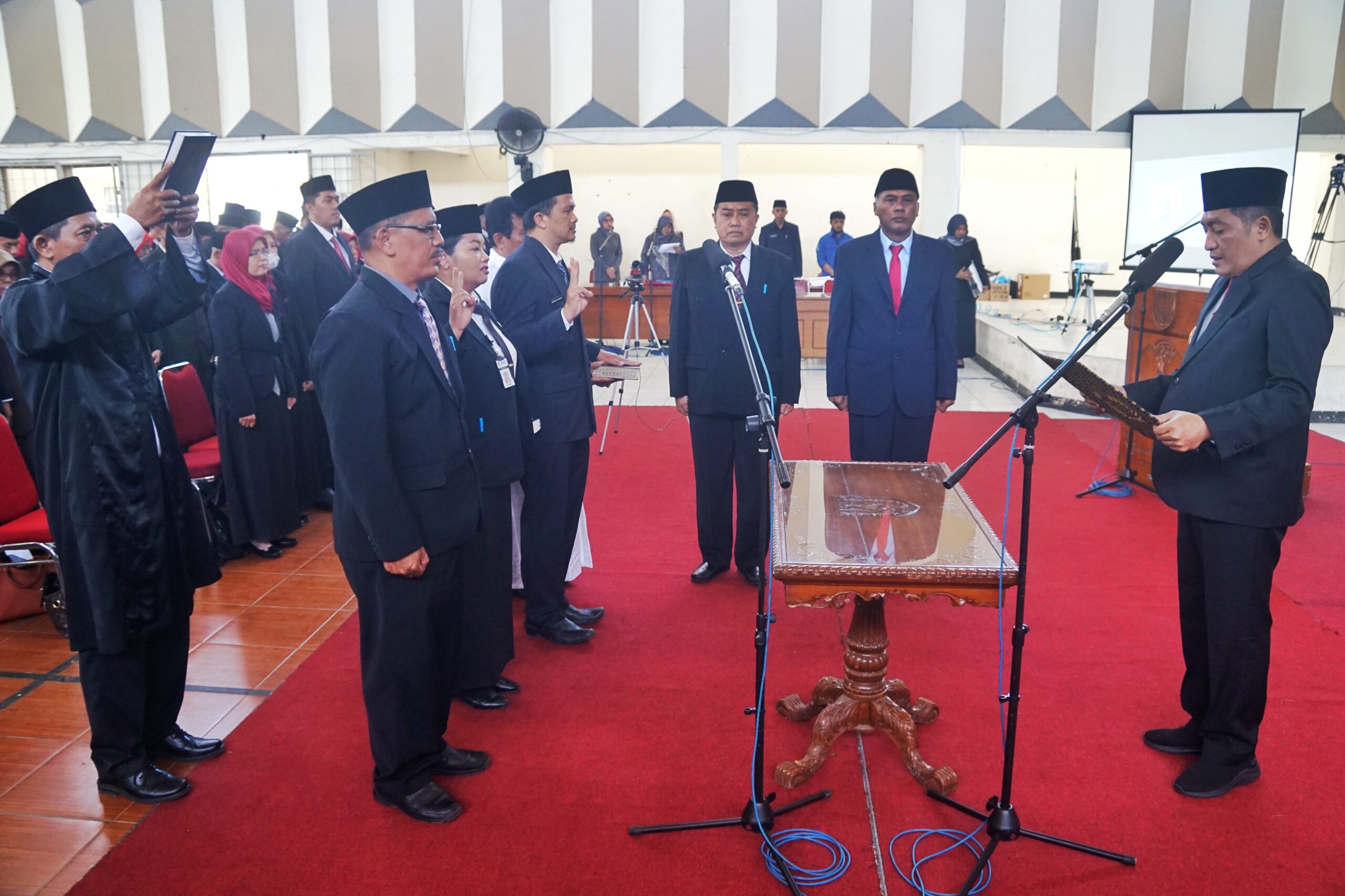 PIMPIN PELANTIKAN : Bupati Magelang Zaenal Arifin melantik dan mengambil sumpah jabatan Kepala Sekolah di Lingkungan Pemerintah Kabupaten Magelang (Dok Prokompim Kab Magelang)