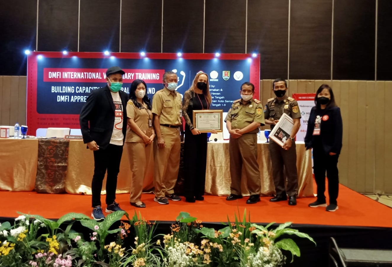 Penghargaan tersebut diserahkan langsung oleh Ketua DMFI, Dr. Katherine Polak kepada Kepala Satuan Polisi Pamong Praja dan Penanggulangan Kebakaran Kabupaten Magelang, Wisnu Harjanto dalam acara International Veterinary Training di Hotel PO Mall Paragon, Semarang, Senin (13/6/2022) lalu.