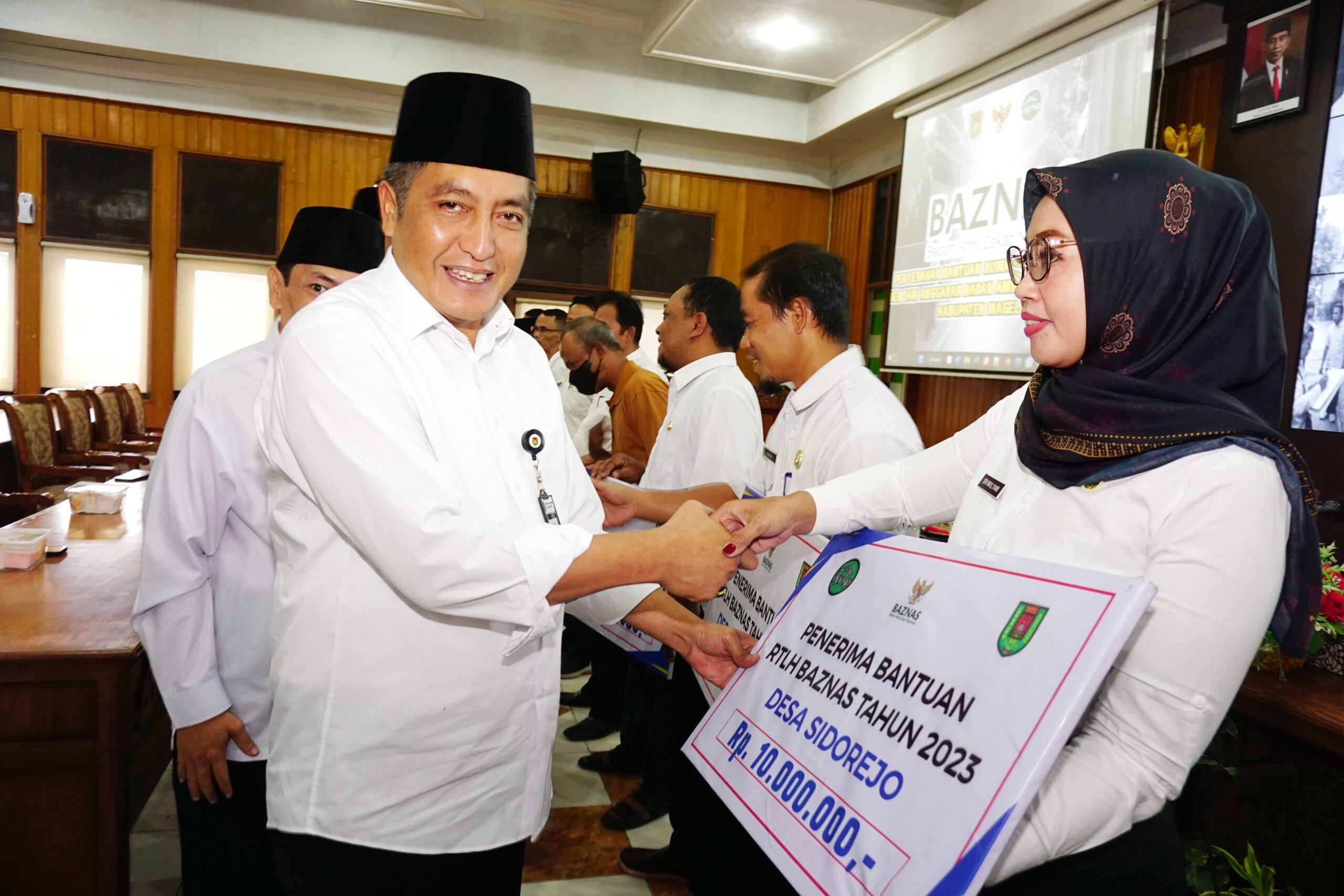 MAGELANG (wartamagelang.com) – Sebanyak 11 desa menerima bantuan Rumah Tidak Layak Huni (RTLH) dan santunan anak yatim/piatu dari Badan Amil Zakat Nasional (Baznas) Kabupaten Magelang. Bantuan diserahkan secara simbolis oleh Bupati Magelang Zaenal Arifin di Ruang Bina Karya, Setda Kabupaten Magelang, Rabu (26/7/2023).