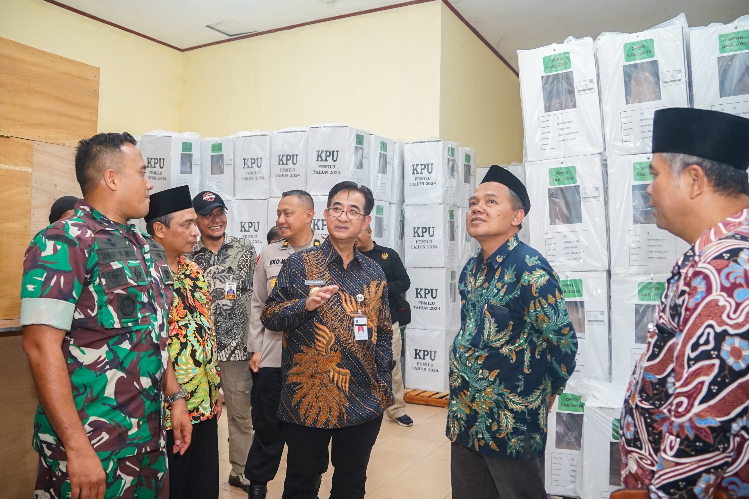 TINJAU LOGISTIK : Pj Bupati Sepyo Achanto meninjau lokasi logistik Pemilu 2024 usai menghadiri Rapat Koordinasi Dalam Rangka Mensukseskan Pemilu 2024 (Dok Prokompim Kab Magelang)