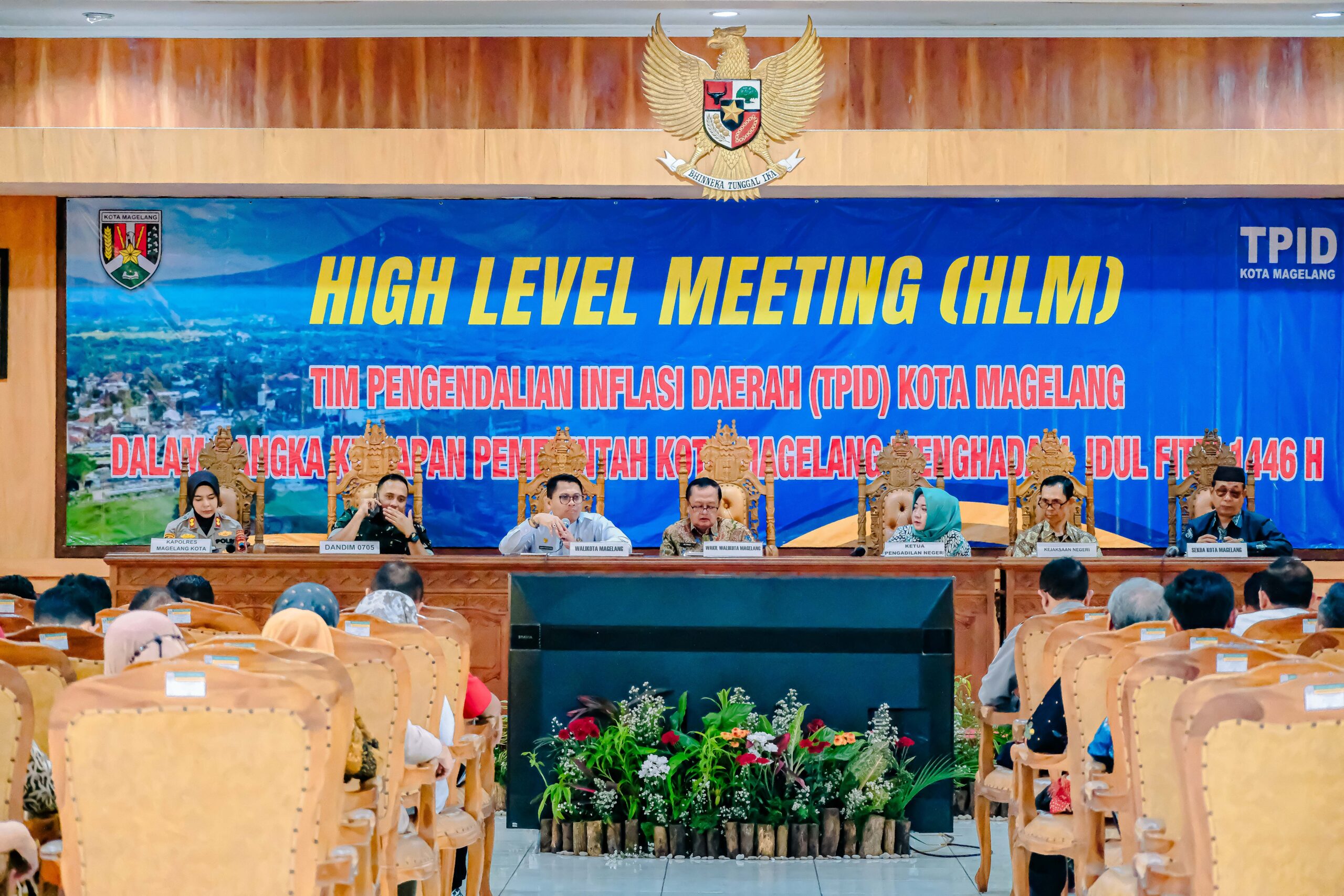 Wali Kota Magelang Damar Prasetyono menekankan hal tersebut saat memimpin High Level Meeting (HLM) Tim Pengendali Inflasi Daerah (TPID) Kesiapan Menghadapi Hari Raya Idul Fitri 1446H, di Aula Adipura Kencana, Jumat (21/3/2025).